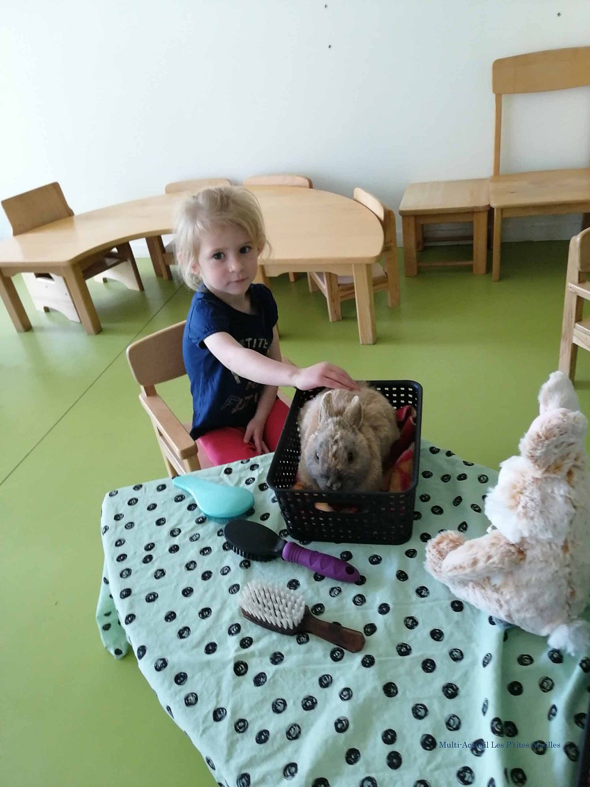 Depuis le vendredi 4 juin, nous proposons aux enfants des ateliers de médiation animale. L’occasion pour nos p’tites abeilles d’interagir avec le monde animal, en présence d’une professionnelle qualifiée, Marianne KERGOSIEN, accompagnée de ses compagnons (lapins, cochons d’inde et chien).