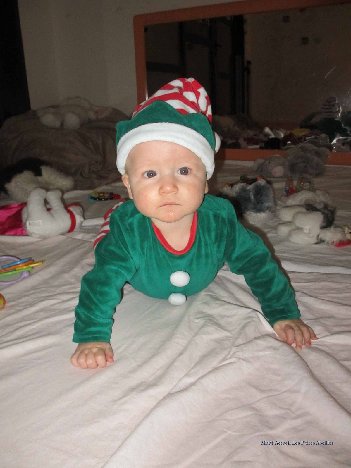 Vendredi 17 décembre, le jour du repas de Noël au multi accueil, préparé par Pierre et Raphaël nos cuisiniers, nous avons invité les familles à habiller les enfants aux couleurs de noël.