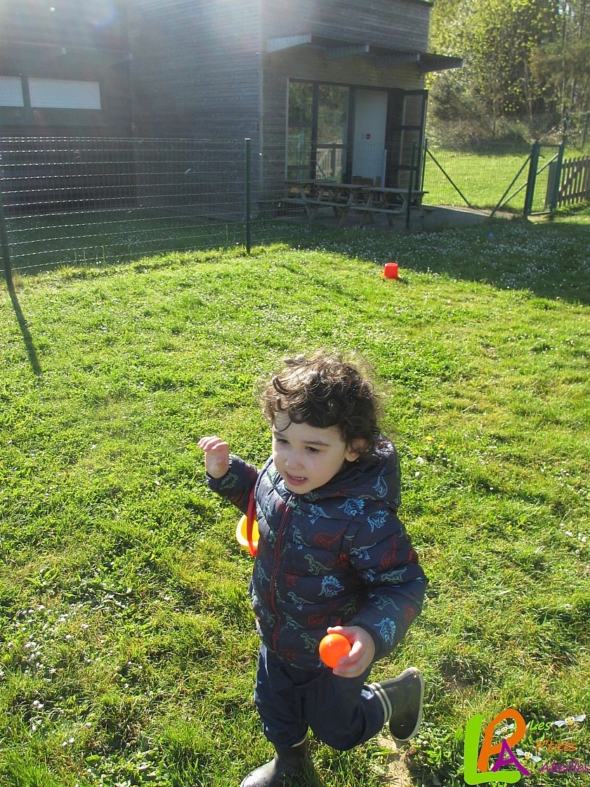 Mardi 19 avril, une drôle de poule a traversé le jardin du multi accueil. Les enfants qui n’étaient pas très rassurés à la vue de cette poule ont pu voir qu’elle avait dispersé des œufs à différents endroits. Après son départ, munis de leurs bottes, les enfants sont vite partis ramasser les œufs. Seul ou à 2, les seaux se remplissent très rapidement.